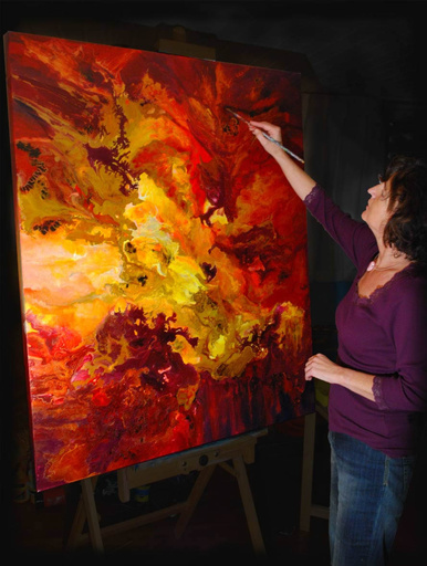 Experience the energetic paintings of Caroline and a new world reveals itself to you. The world beyond the forms, a world of emotions expressed in intense colours. They radiate a joyful energy, because they are created in joy. Caroline paints from her heart, and ideas arise spontaneously in the moment. Playing with only pure acrylic paints, new colour compositions arise on the canvas. Layer by layer the painting develops, the result is always a surprise.